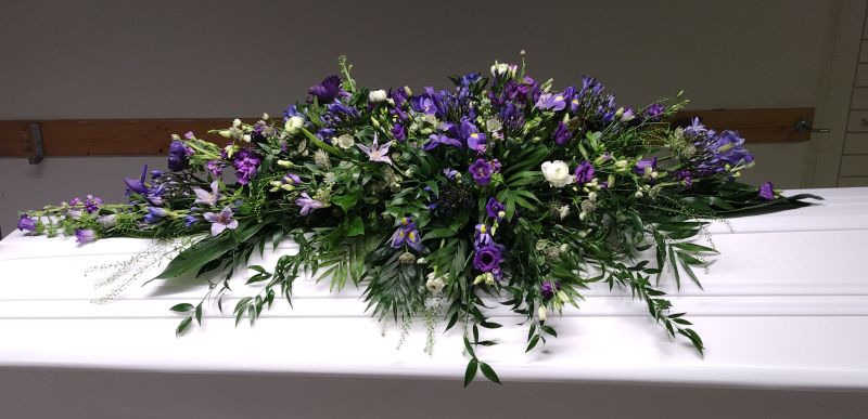 Arkkulaite sinisävyisistä kukista.
