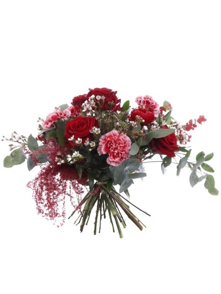 Punastus on nimensä veroisesti punainen. Ruusupohjainen kimppu kauden punasävyisistä kukista. Lisäkukkamateriaalit vaihtelevat saatavuuden mukaan.