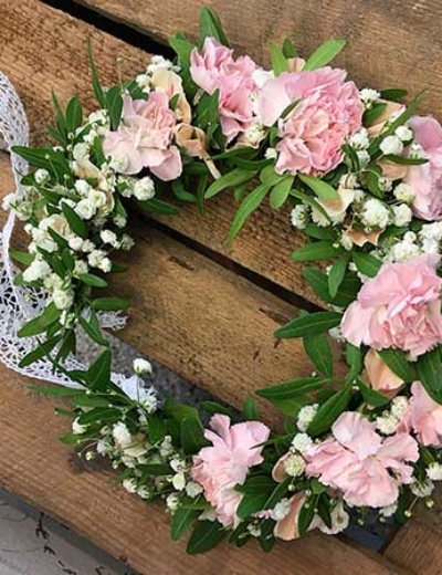 Meiltä saat myös kastetilaisuuteen tarkoitetut koristekukat. Kastemalja voidaan koristaa kauniilla kukkaseppeleellä ja juhlapaikka kukka-asetelmilla. Pienelle uudelle vauvalle voidaan myös suunnitella kaunis pääseppele.
